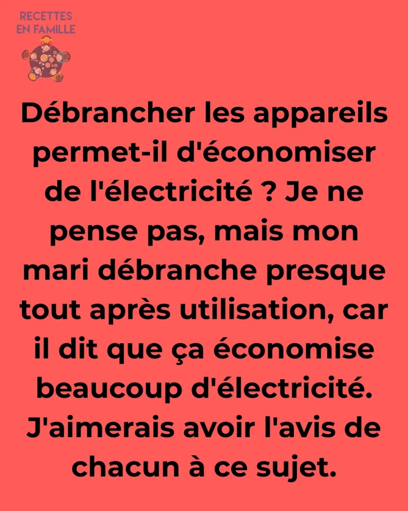 ✨ Et vous, avez-vous déjà remarqué combien d’appareils restent branchés chez vous sans raison ? Partagez vos astuces en commentaire et envoyez cet article à vos amis pour qu’ils arrêtent eux aussi de se faire “voler” leur argent par ces vampires électriques !