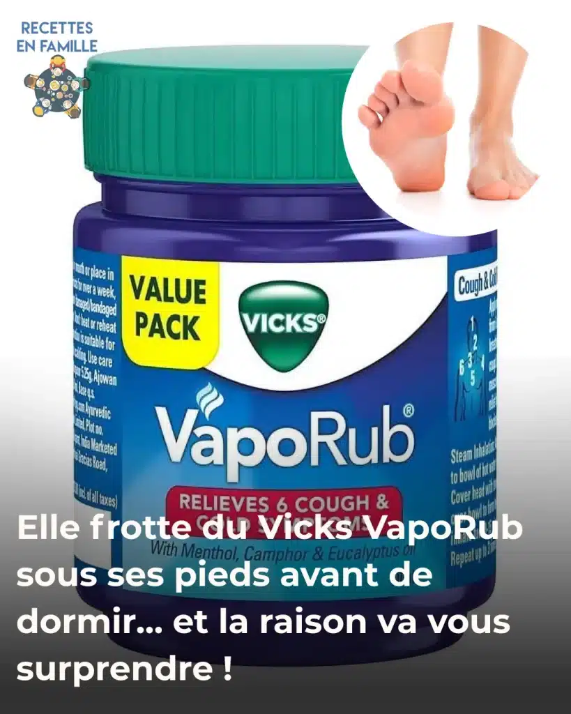 Oui, tu as bien lu. Certaines femmes appliquent du Vicks sur la plante de leurs pieds avant de se coucher… et les résultats sont bluffants ! Tu vas découvrir pourquoi cette astuce méconnue peut transformer tes nuits – et peut-être même ton humeur du matin.