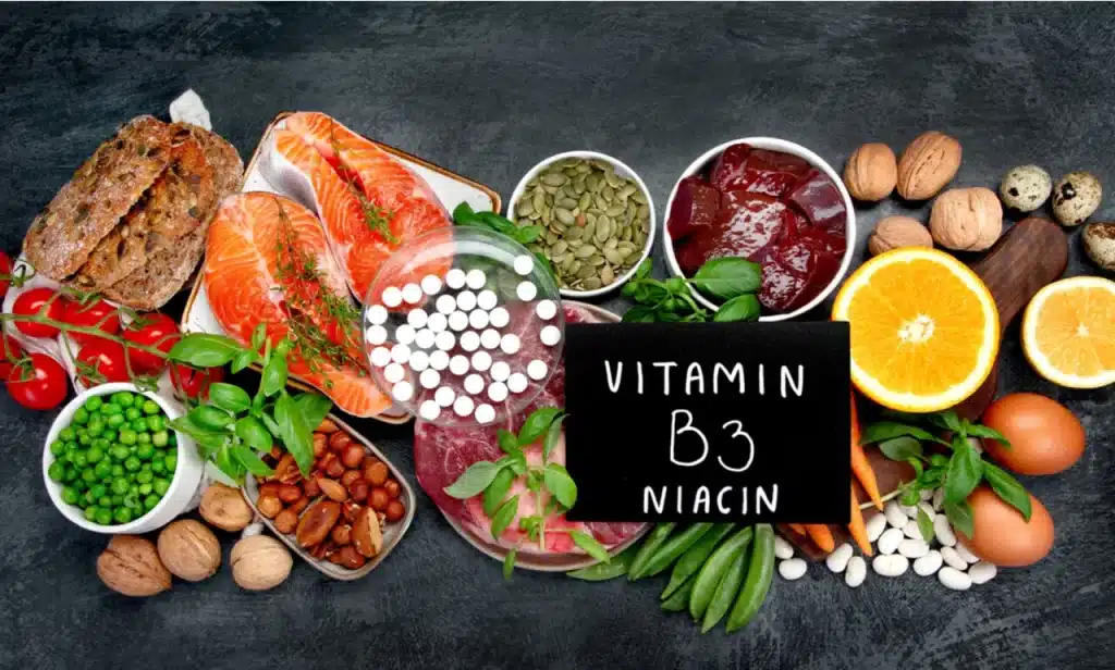 La vitamine B3 se trouve naturellement dans des aliments comme le poulet, la dinde, le thon, le saumon, le riz complet et les légumineuses. Pour les personnes souffrant de problèmes circulatoires, des compléments alimentaires peuvent être prescrits par un professionnel de santé pour des doses plus élevées.