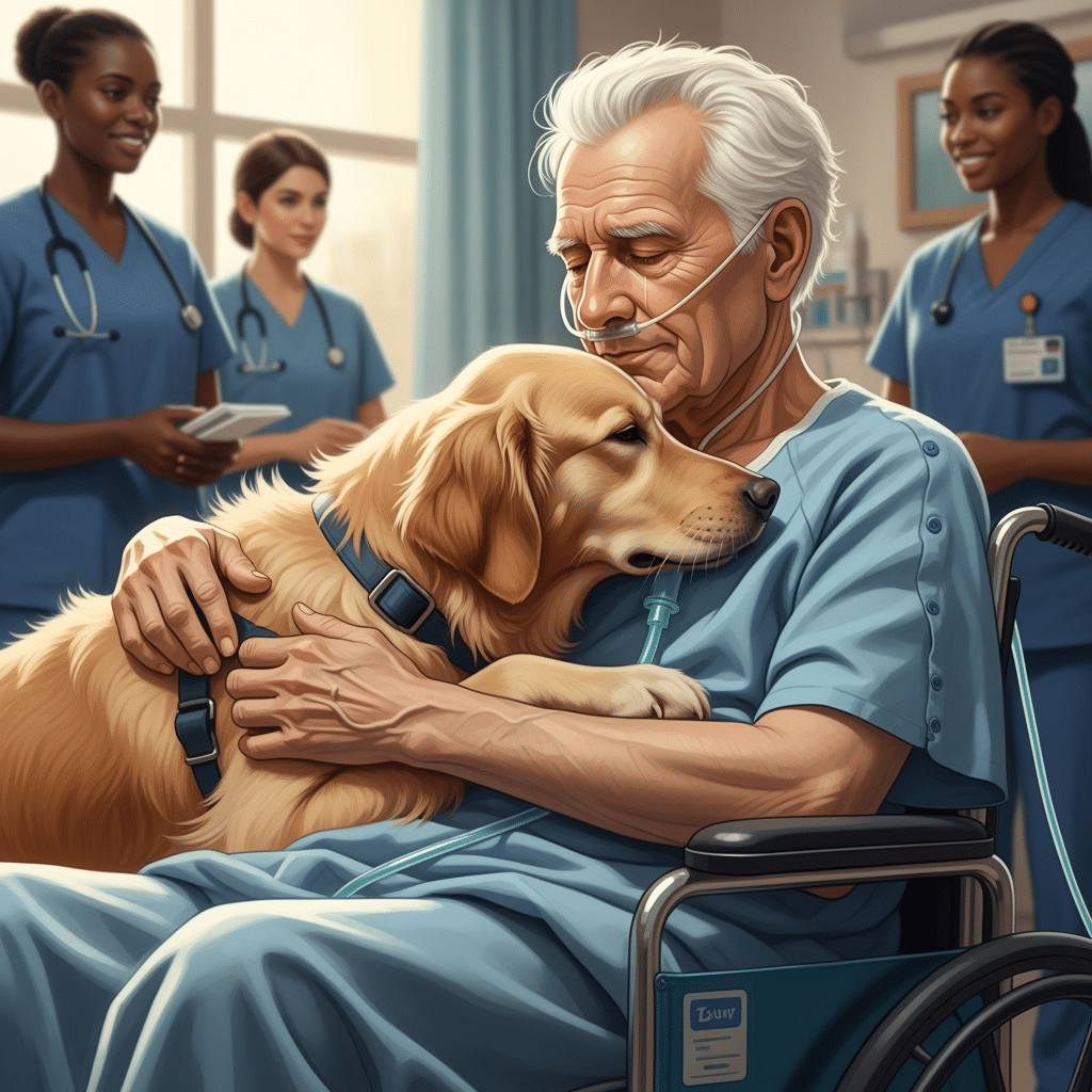 Sa queue remuait doucement. Son regard ne déviait jamais. Il s’est approché d’un pas assuré, a grimpé sur le lit et a posé sa tête sur la poitrine du vieil homme.