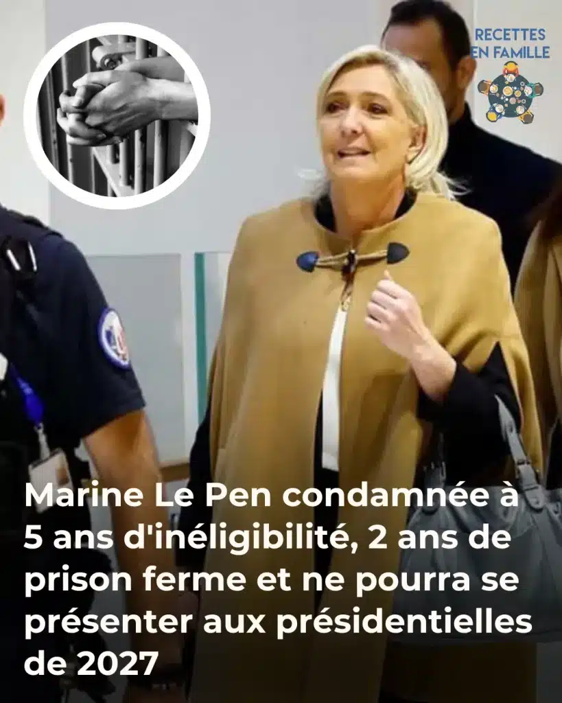 Le 31 mars 2025, le tribunal de Paris a rendu une décision très attendue concernant Marine Le Pen, la présidente des députés du Rassemblement National. Le verdict est sans appel : elle a été condamnée à 5 ans d’inéligibilité avec effet immédiat, ainsi qu’à une peine de 2 ans de prison ferme, aménagés sous bracelet électronique. Cette condamnation bouleverse non seulement son avenir politique, mais pourrait aussi avoir des répercussions profondes sur la prochaine élection présidentielle.