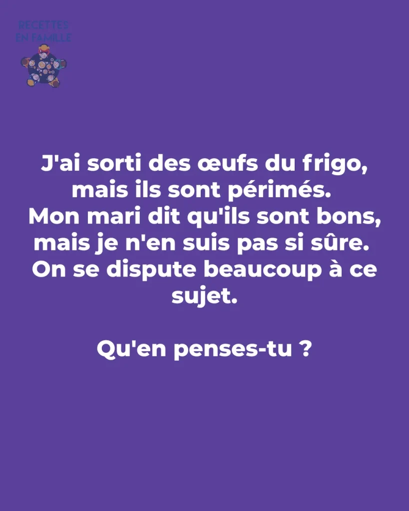 Quand l’un craint les risques et l’autre veut éviter le gaspillage, cela peut créer des tensions. La clé est de communiquer ouvertement, d’écouter les inquiétudes de chacun et d’adopter ensemble des méthodes simples pour vérifier la fraîcheur des œufs. Cela permet d’éviter les conflits et de faire des choix qui rassurent tout le monde.