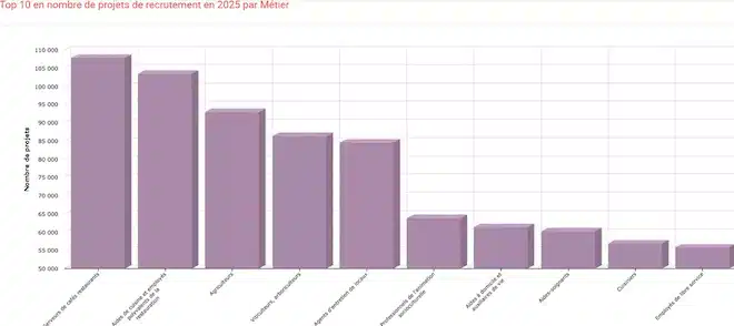 🥇 En tête du classement : le métier de serveur ou serveuse de cafés et restaurants, avec plus de 107 800 postes à pourvoir cette année. Oui, vous avez bien lu !