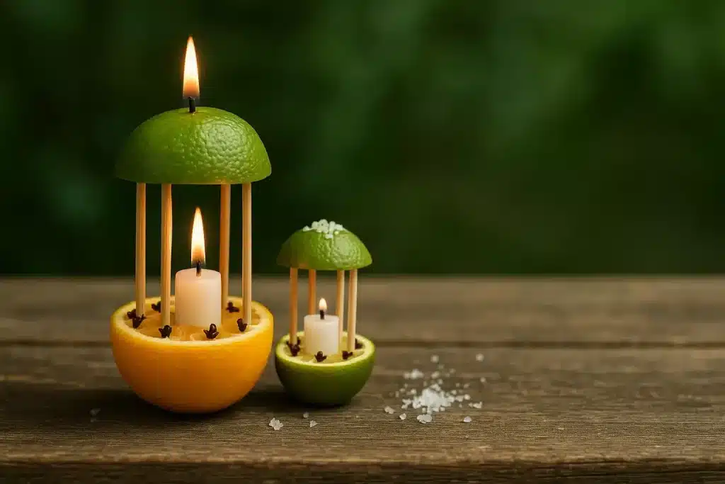 Coupez un citron en deux, piquez-le généreusement de clous de girofle, puis placez-le près d’une fenêtre, sur votre balcon ou au centre de la table lors d’un dîner en extérieur.