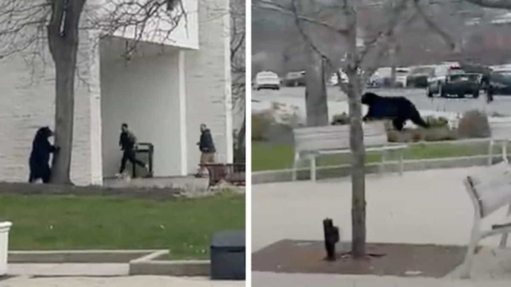 Vendredi 11 avril, dans une zone commerciale paisible, les clients étaient loin d’imaginer que leurs courses allaient prendre un tournant… sauvage. Un ours noir de deux ans, récemment sorti d’hibernation, a été repéré alors qu’il grimpait tranquillement dans un arbre près du centre commercial.