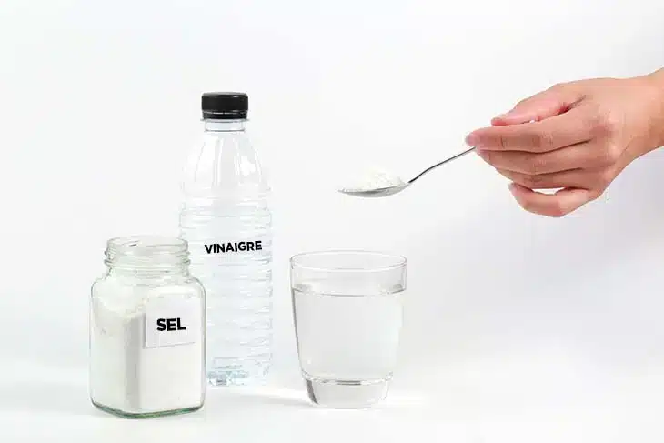 - Le vinaigre blanc assainit l’air et amplifie l’effet du sel.