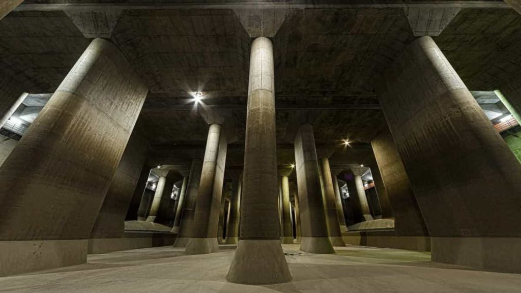 Avec ses 59 piliers en béton de 18 mètres de haut, ses cuves géantes et ses tunnels de plusieurs kilomètres, l’endroit semble sorti tout droit d’un film comme Inception ou Matrix.