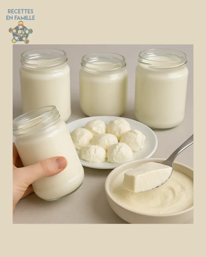 💡 Le rôle des ferments : ils transforment le lactose du lait en acide lactique, épaississant le mélange et créant la texture crémeuse du yaourt.